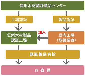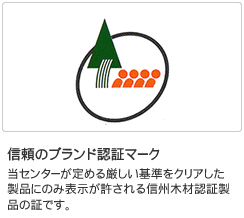 信州木材認証製品センターが、一定の品質基準を満たした信頼の製品であることを認証した県産材を「信州木材認証製品」といいます。