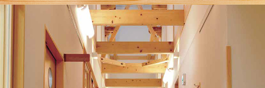 「接着重ね梁」は、部材を複数組み合わせて接着した新しい梁桁材で、無垢材に近い見た目と質感を持ち、建築基準法第37条に基づく国土交通大臣の認定を取得した、品質・性能に優れた材料です。