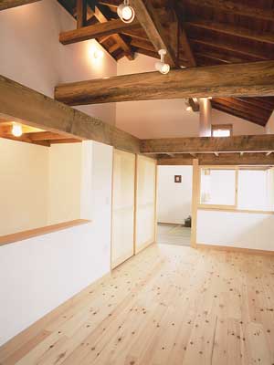 - 天井:1階根太床天井、2階小屋組表わし天井