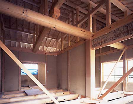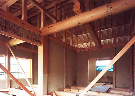 大きな丸太ばりと土かべで、